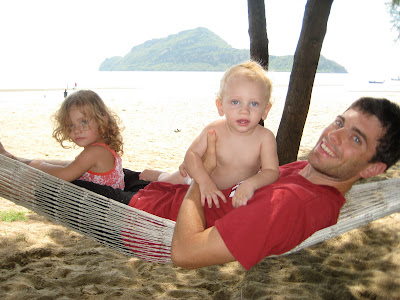 I don't want to say much about the drive, except to say that I laid down the whole way, puked more times than I care to remember, and required IVs both on arrival at our destination and arrival back in Laos. It's an experience that I am blocking out of my memory, other than to say that Nathan got us all there, kept the kids happy, did all the driving, stopped whenever I needed for however long I needed, kept us fed, and couldn't have done a better job of taking care of me. He's amazing. The kids were happy campers on the drive, and Eva kept saying that the beach is coming, the beach is coming the whole way there, though she'd never been before. She was so excited.