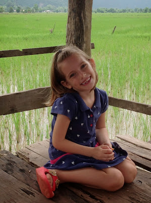 And while the kids lounged and ate and watched the creatures in the rice fields, I read to them from the book we're currently reading together.